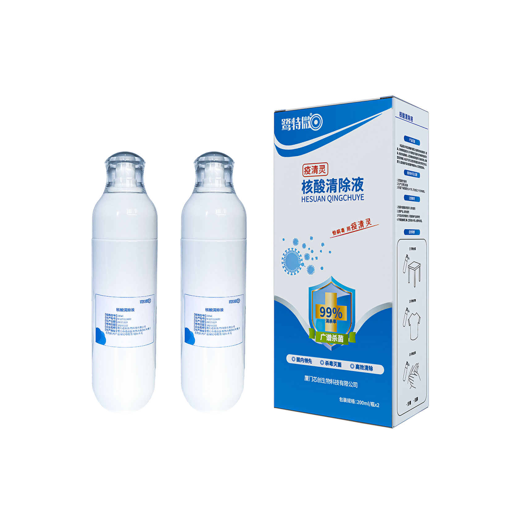 核酸清除液做為一款新興消毒產品,它即不像醇類、氯類消毒液一樣有刺激性腐蝕性,它無色無味綠色環保,消費者使用體驗感極佳。日常消毒噴一噴,靜置3-10分鐘,即可滅活99.99%新冠病毒。2瓶量販裝,一瓶居家消毒,一瓶辦公消毒,人無我有,人有我優,最具性價比!